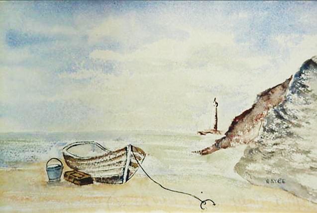 “Rowboat” watercolour by my spouse, Norman Ayre, (C)1991